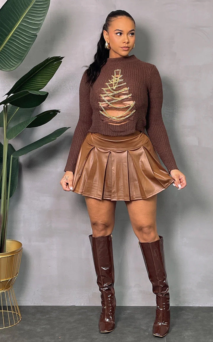 Mocha Pleated Skirt